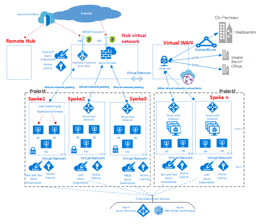 比如微软azure云架构的中心辐射架构