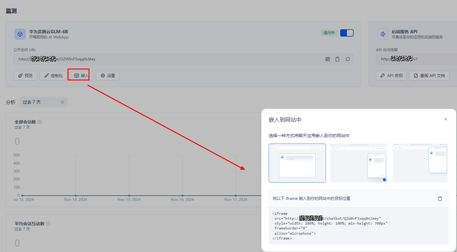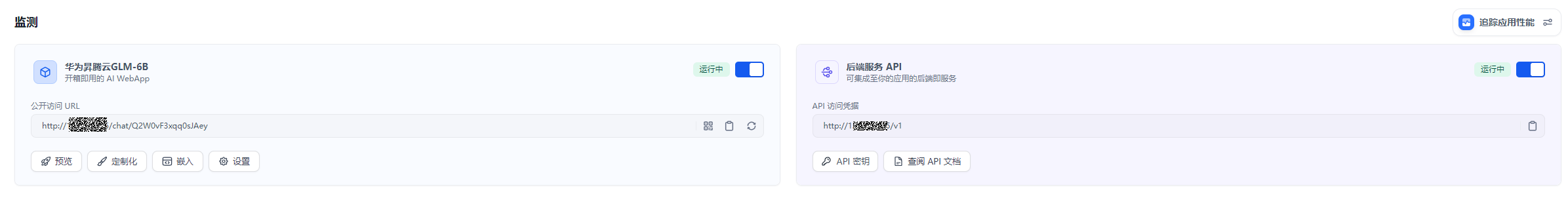 2. 发布应用:调试好应用后,点击右上角的 “发布” 按钮生成独立的 AI 应用。除了通过公开 URL 体验该应用,你也进行基于 APIs 的二次开发、嵌入至网站内等操作。