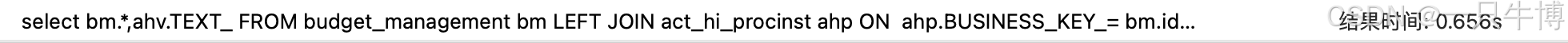 LEFT JOIN act_hi_procinst ahp ON ahp.BUSINESS_KEY_= bm.id