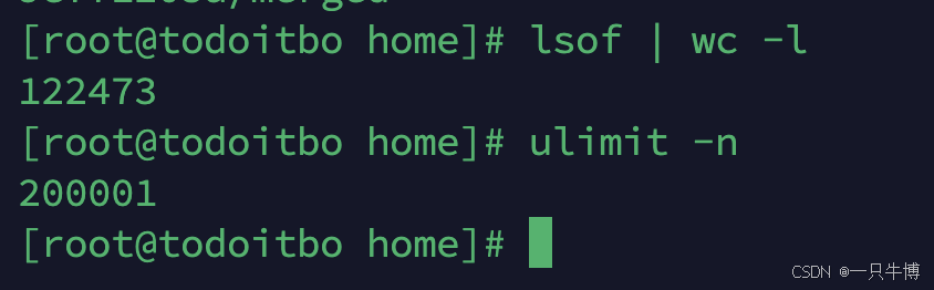 • 临时增加文件描述符限制:ulimit -n 100000。