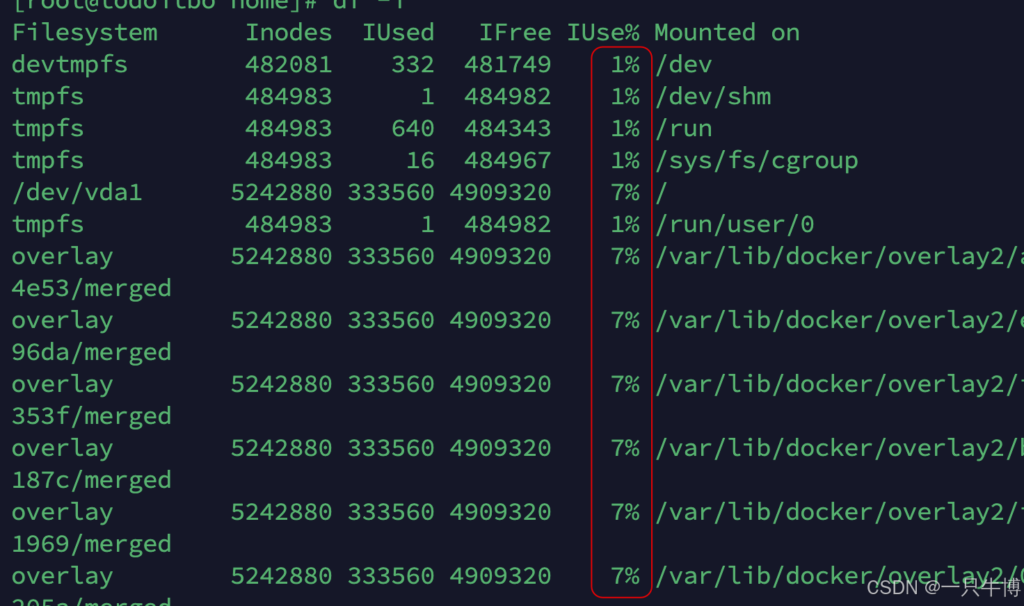 原因:即使磁盘空间没有用尽,如果所有的 inodes(文件索引节点)都被用完了,系统也无法创建新文件。