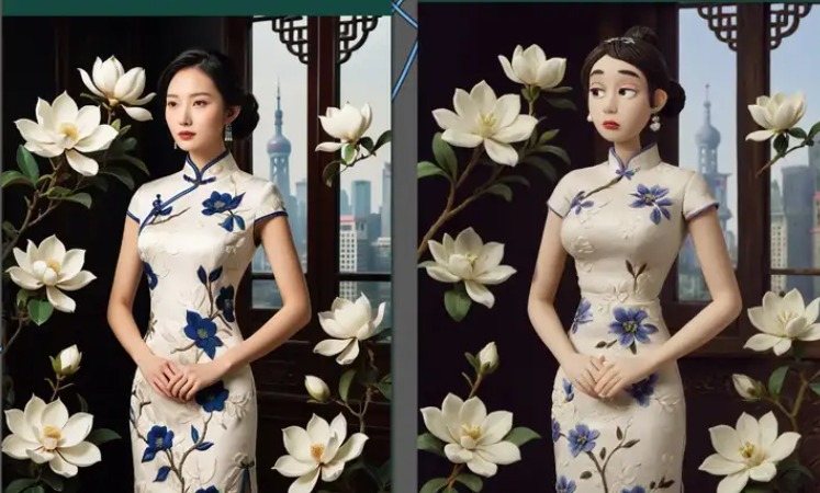 我用AI生成的帅哥来试试,丑萌丑萌的挺好玩的,再看看穿旗袍的美女!