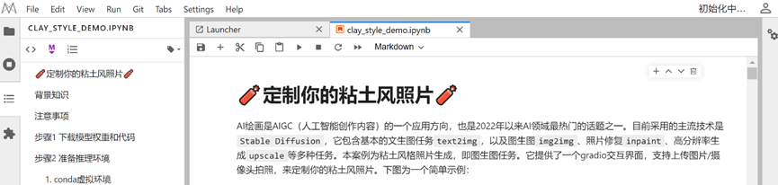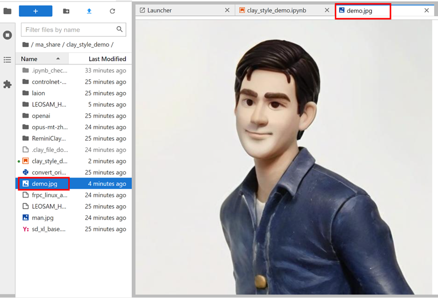 通过环境准备,我们安装了本次案例所需要依赖库,并下载案例所需文件到“/home/ma-user/work/ma_share/clay_style_demo”目录中,即当前目录,可以点击界面左侧的文件夹按钮查看。