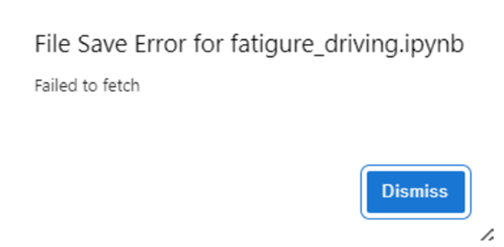 1.出现 File Save Error fatigue_driving.ipynb,为内网问题,点击 Dismiss 即可。不用关心。