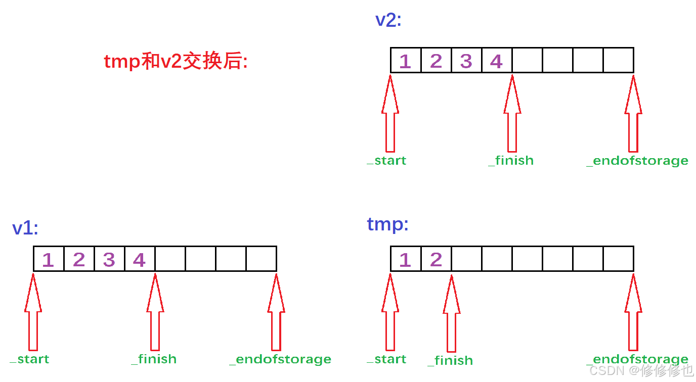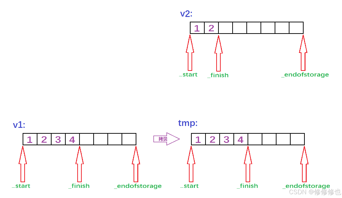 • iterator类型成员变量_finish,是指向vector最后一个有效元素的后一位置的迭代器.