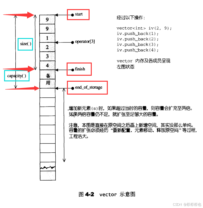 该模拟实现仅适用于STL初学小白了解vector的简单实现,会结合一些STL源码作为参照,但是源码中涉及的空间配置器部分我们不做涉及!