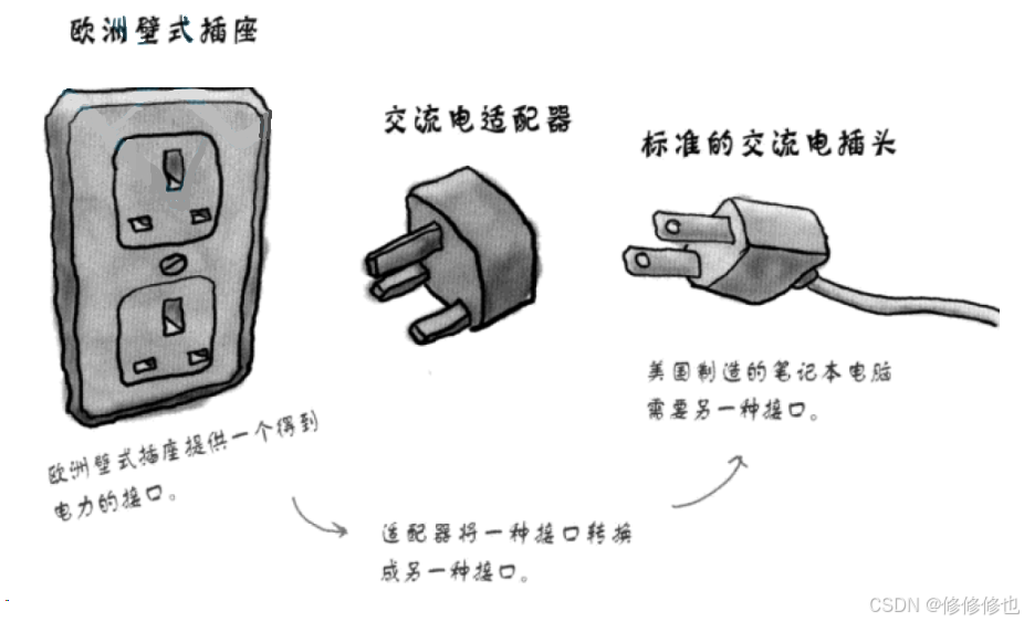 适配器是一种设计模式(设计模式是一套被反复使用的、多数人知晓的、经过分类编目的、代码设计经验的总结),该种模式是将一个类的接口转换成客户希望的另外一个接口 :