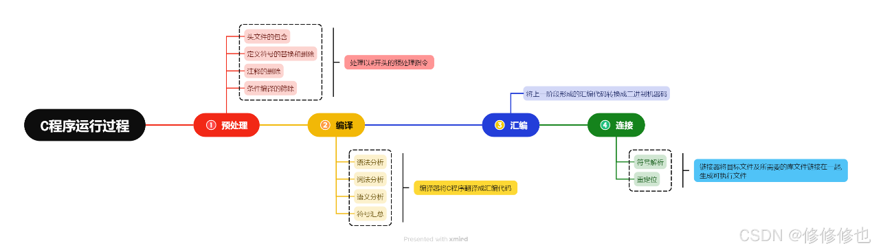 • 预处理功能主要包括宏定义替换,头文件包含,条件编译,去注释等。