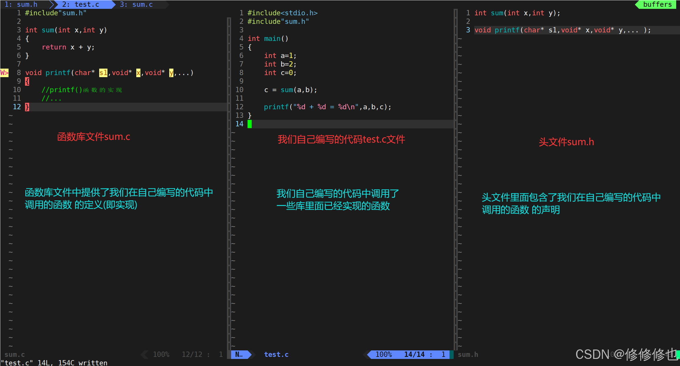 这是因为,中有我们调用的C言函数的定, 它们三个的关系如下图:​编辑