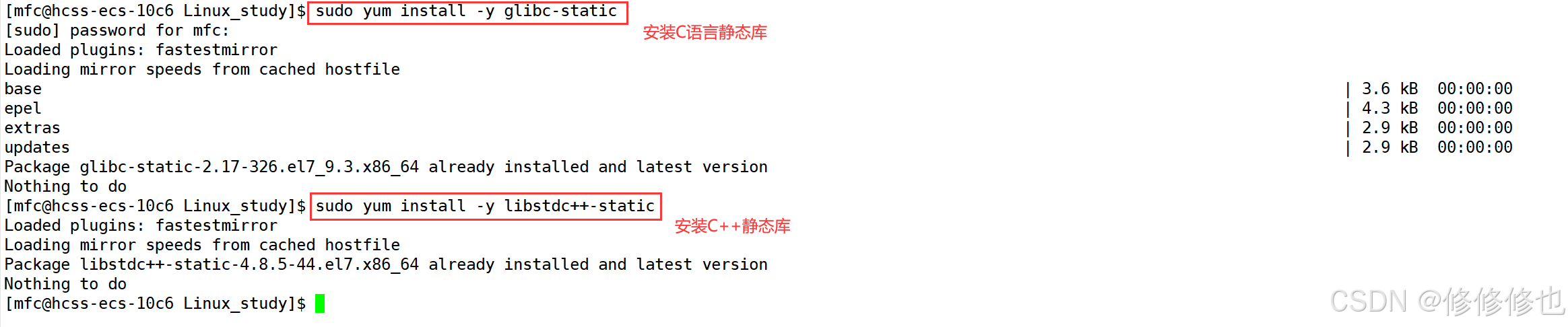 防止有朋友还没有安装C语言/C++的静态库,在这里贴两条安装语句供大家参考: