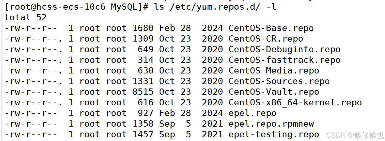 然后我们检查一下yum源文件,可以看到是没有MySQL相关安装内容的: