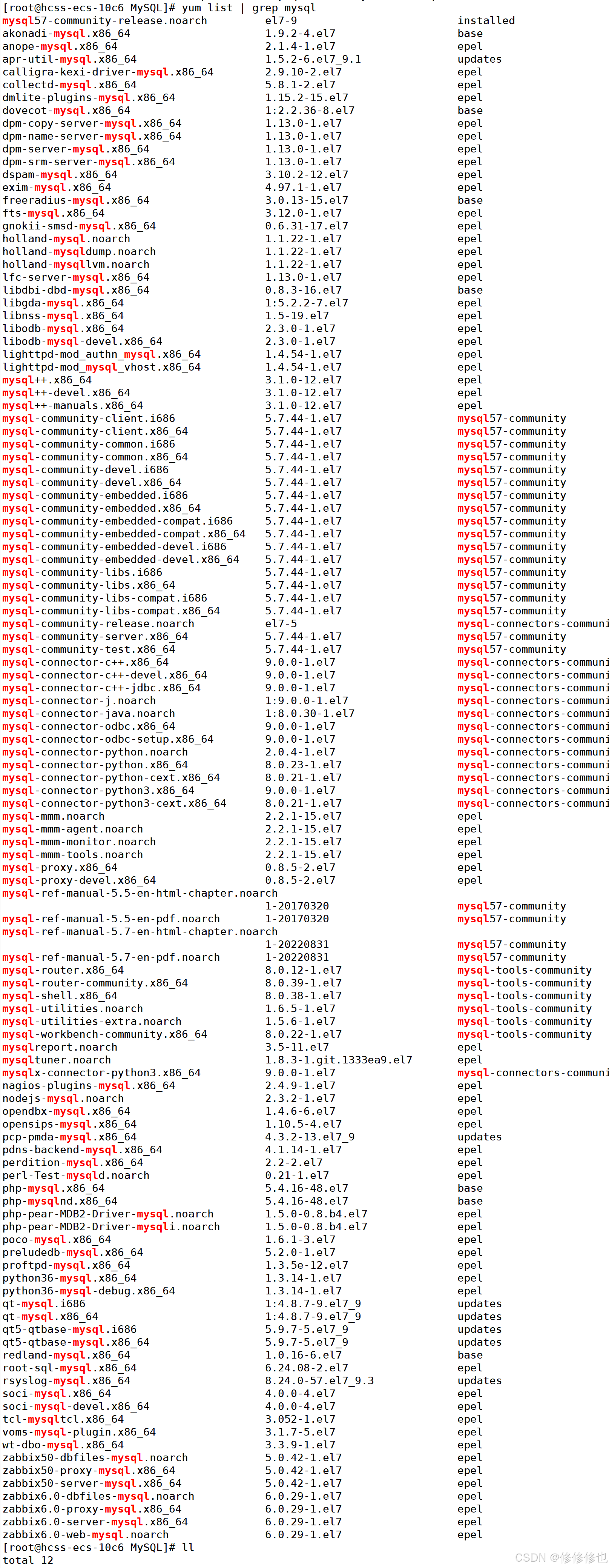解压好我们再查询yum源文件,就可以看到有MySQL相关安装内容了: