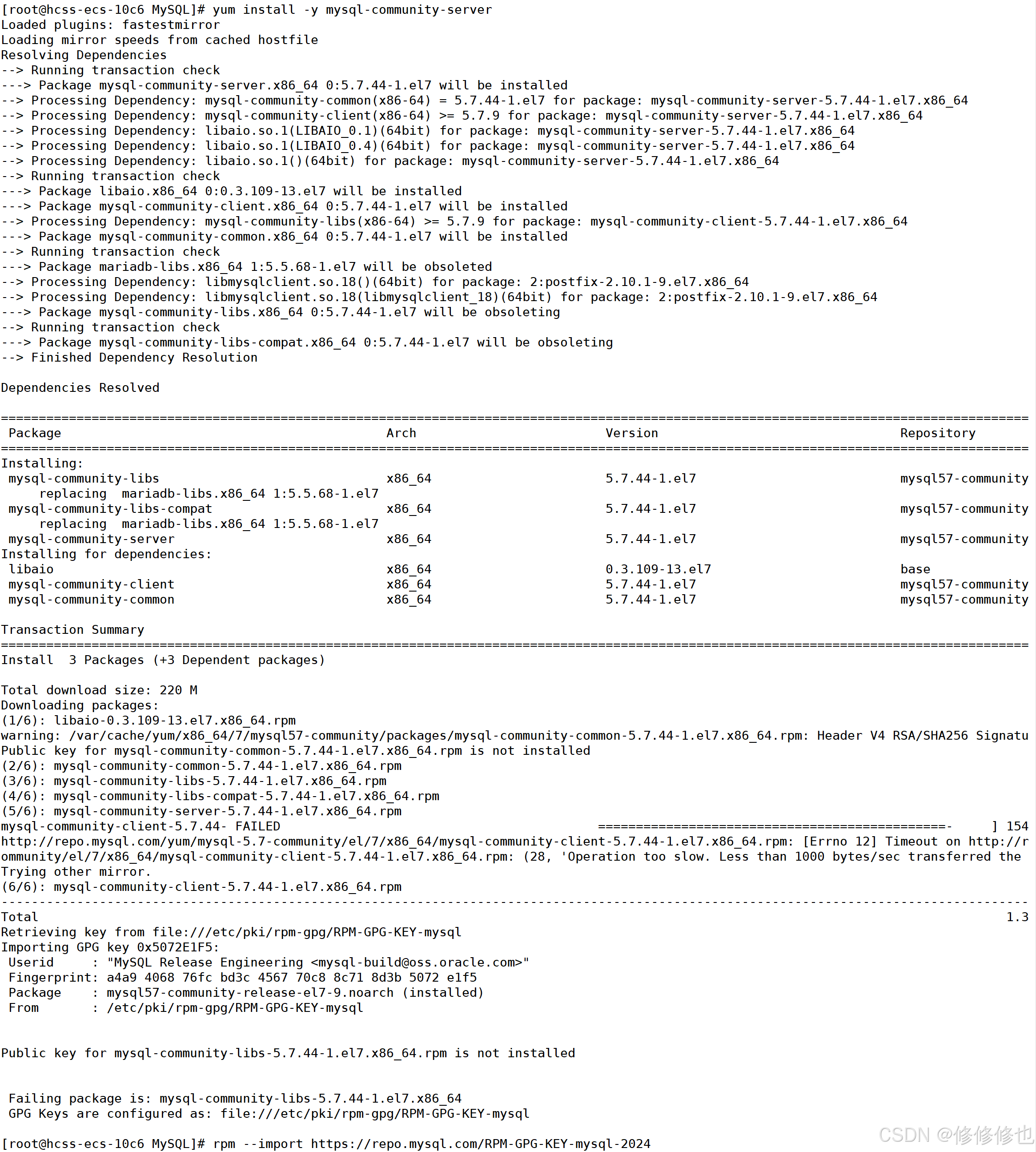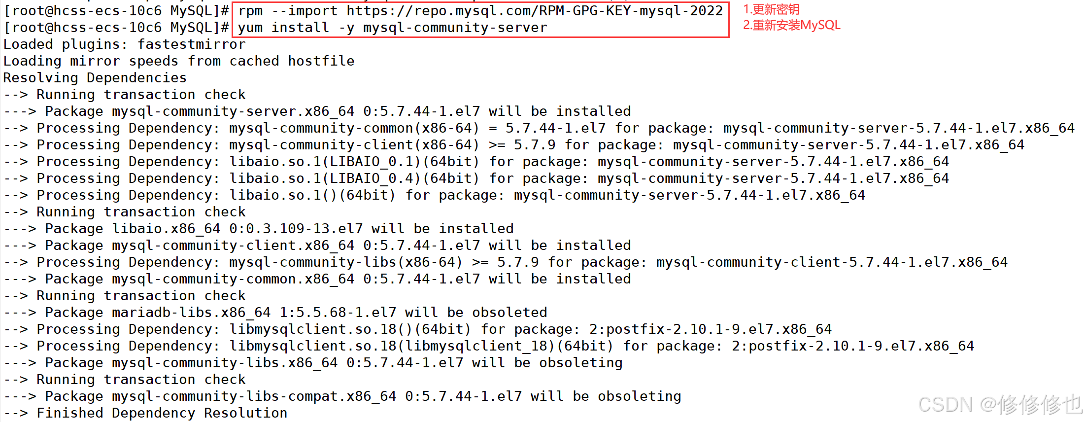 至此,就可以正式开始安装MySQL了,我们输入yum指令: