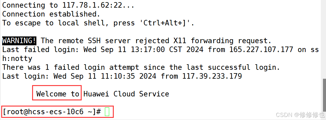 第一步登录云服务器(注意安装yum需要在root身份下进行!所以要登陆root账号):