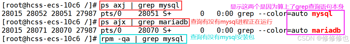然后我们需要检查一下之前有没有安装残留,分别输入下面这三条指令: