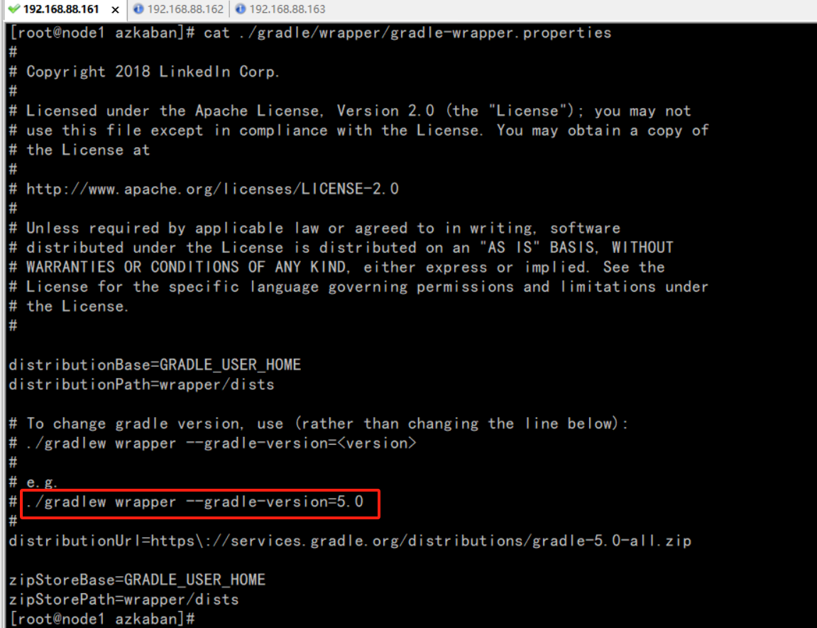 注意:查看该版本azkaban对应的gradle版本为gradle-5.0-all.zip,老版本azkaban可能需要兼容其他gradle版本。