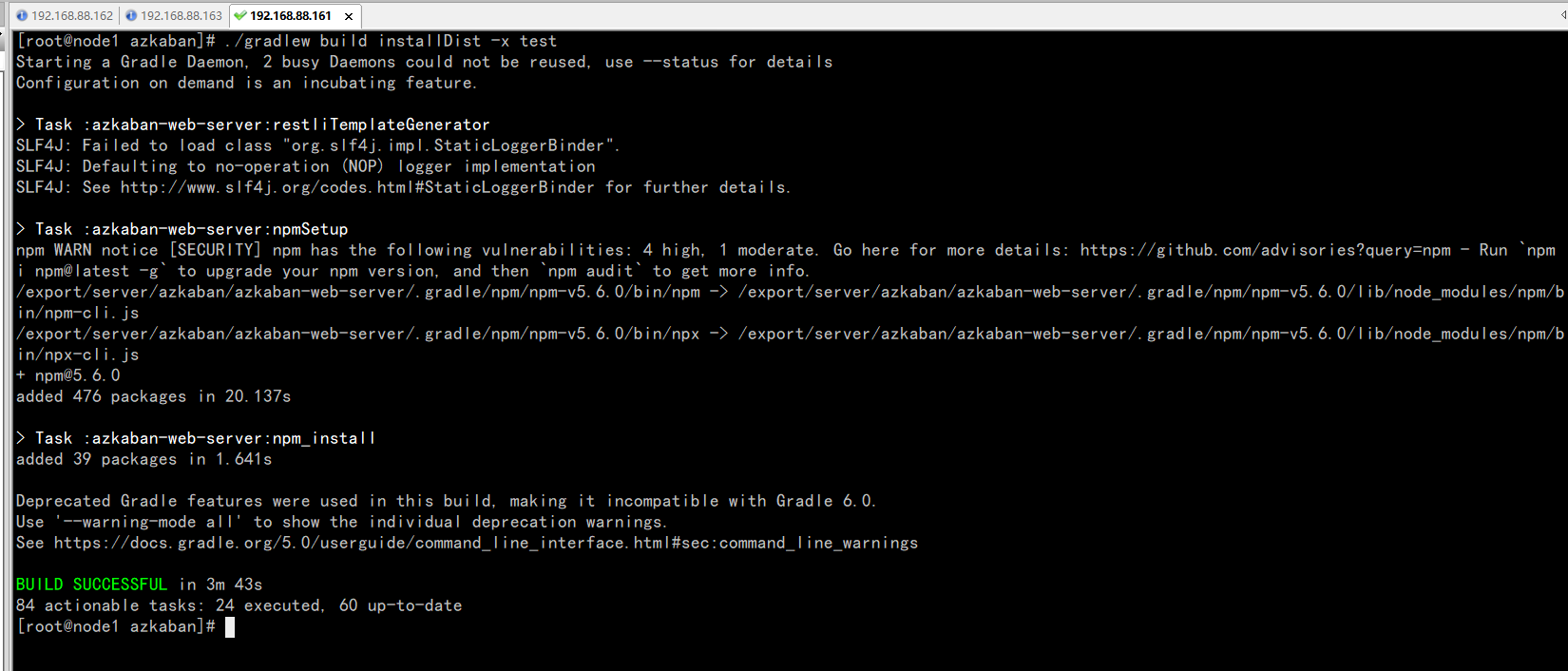 编译Azkaban只需要在进入Azkaban根目录输入以下指令,系统会自动编译Azkaban源文件。