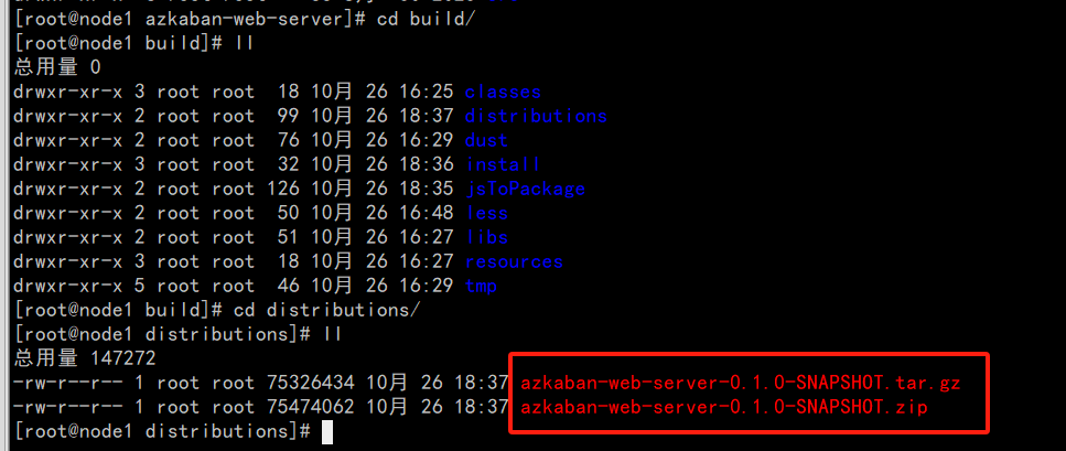 这一步不可以少,否则azkaban的 azkaban-web-server/build 目录下没有 distributions 文件夹也就不会有 azkaban-web-server-0.1.0-SNAPSHOT.tar.gz