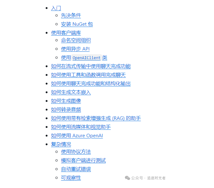 以下是在 .NET 应用程序中使用 OpenAI 库的简单概述。以下代码片段演示了如何创建 OpenAI 客户端并使用它来完成聊天交互: