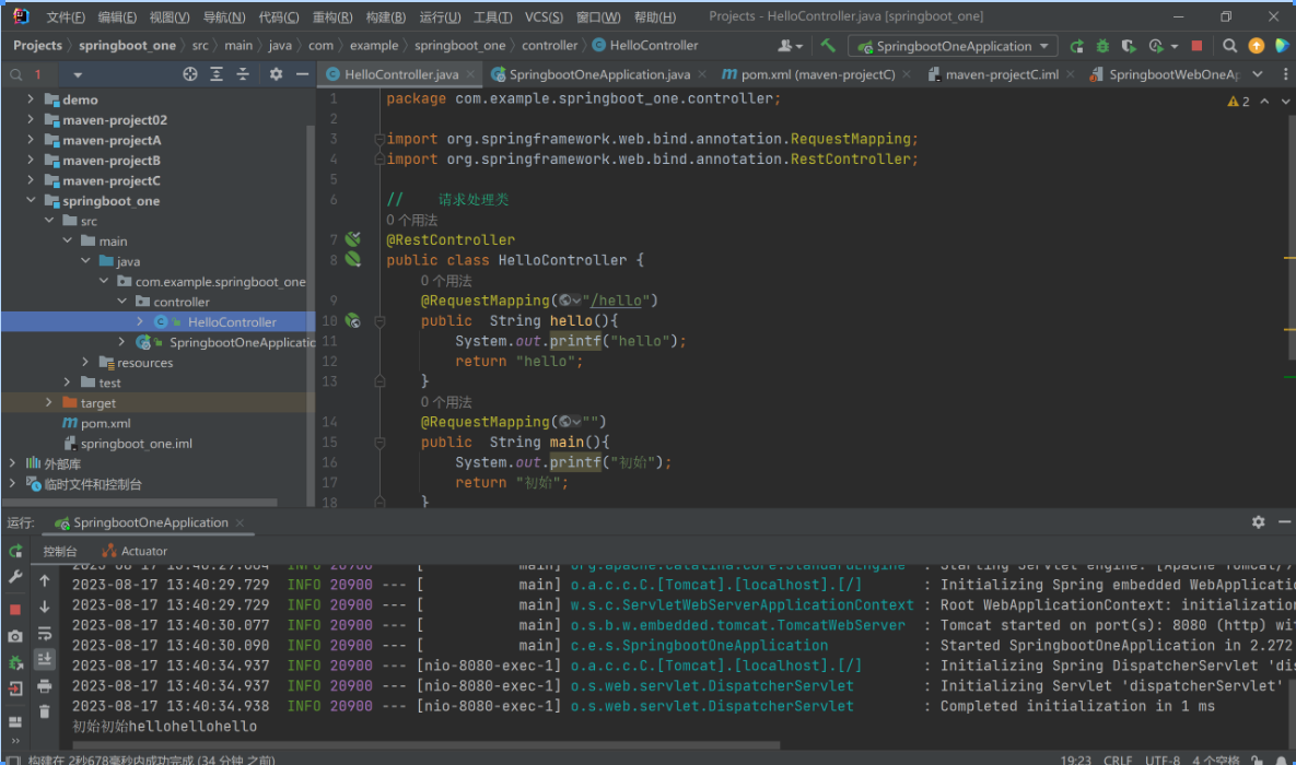 当你启动 Spring Boot 项目并且访问 http://localhost:8080 或其他定义的路径时,Spring Boot 内置的 Web 服务器( Tomcat 或其他容器)会拦截这些请求,并将请求映射到相应的控制器方法。控制器方法执行完成后,返回的内容会被直接写入 HTTP 响应,然后返回给浏览器进行显示。