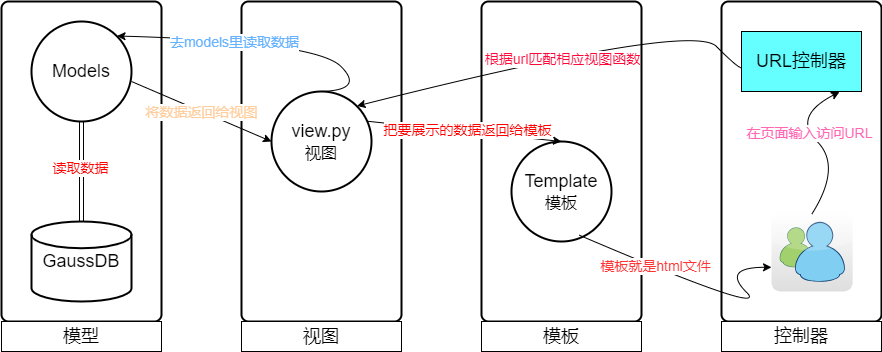 o 数据库抽象:Django ORM支持多种数据库后端(如PostgreSQL、MySQL、SQLite等),代码不依赖于具体的数据库,便于切换数据库。