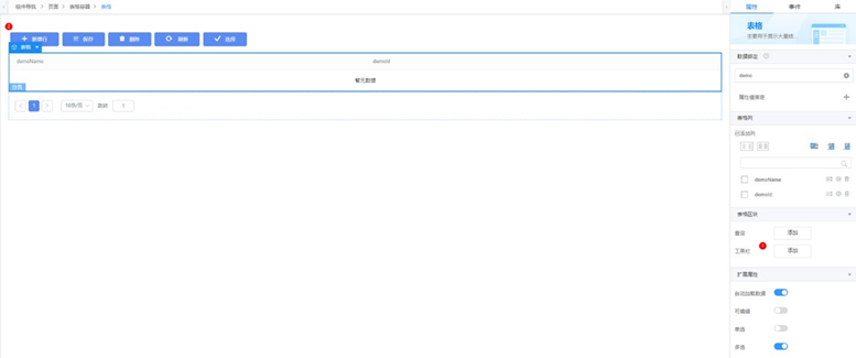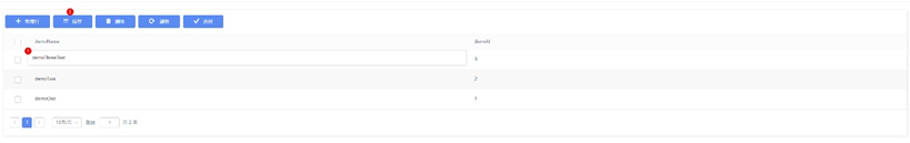 动作:在标准页面的表格中,双击demoName列的数据,进行编辑后点击“保存”。