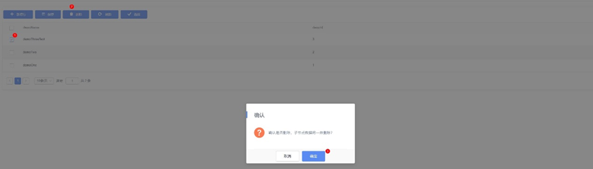 在图1最终页面效果页面,选择对应的表格列,单击“删除”按钮,确认删除。删除成功后,后台对象中的数据也会随之删除。