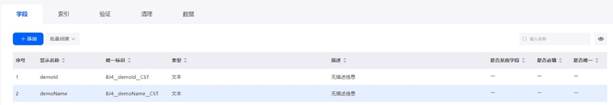 2.新建一个对象(如demoData),并为对象添加字段和数据。