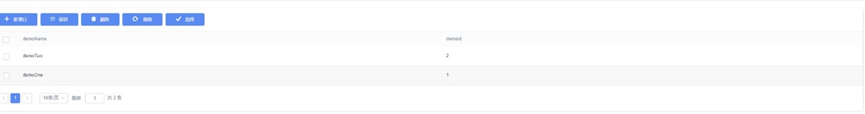 在上图页面中,双击demoName中的数据栏,可以对数据进行编辑。编辑后,单击“保存”按钮,可发现表格中数据已经被更新,同时后台对象也已被更新。图1 在页面更新数据