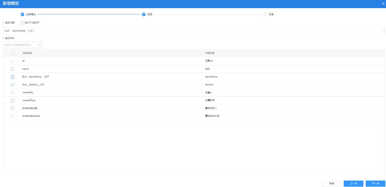 (3)选择2中创建的对象和添加的字段,单击“下一步”,完成模型创建。