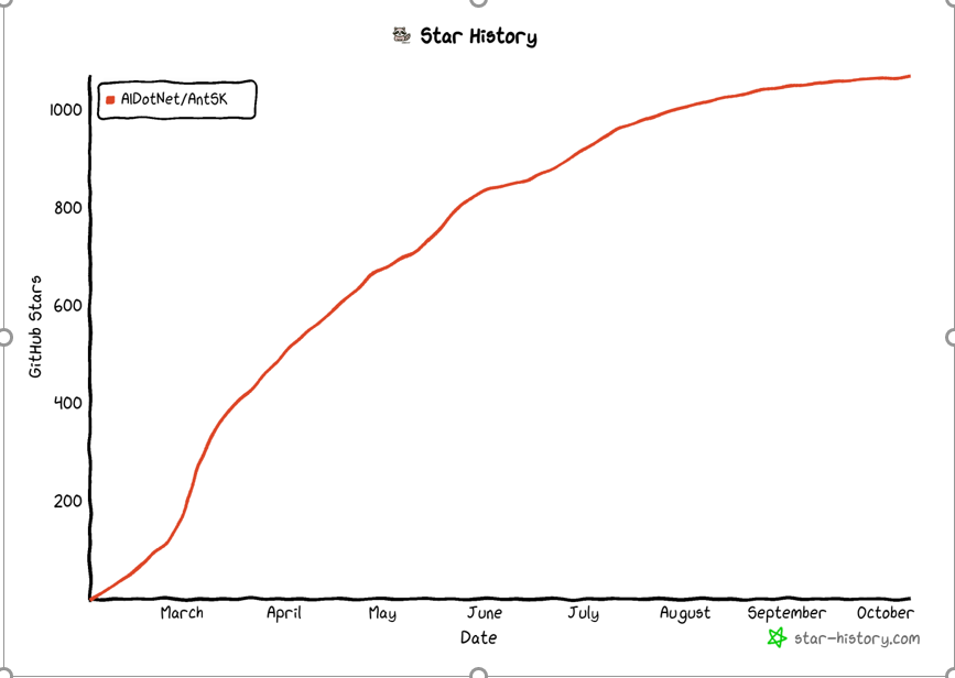 截至2024年10月8日,AntSK在GitHub上拥有1.1k的star和142的fork,有11名贡献者。最近一次代码提交时间为2024年10月。