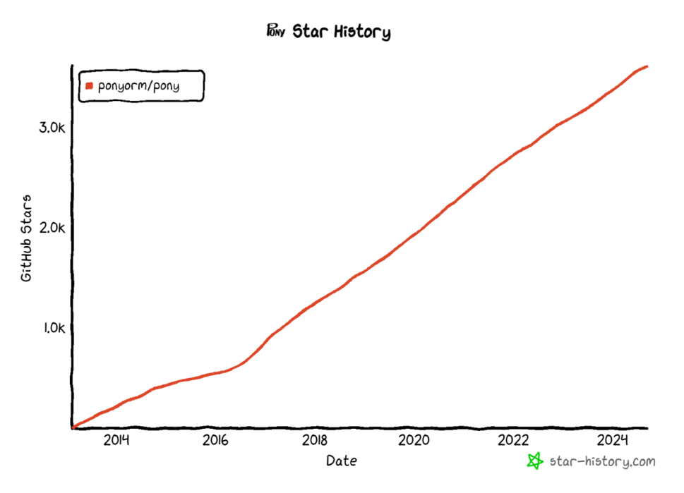 Pony ORM 的用户使用情况广泛,它适用于需要数据库交互的 Python 项目,特别是在 Web 开发、数据分析或任何需要持久化数据的场景。由于其简洁的语法,Pony ORM 也适合初学者快速上手数据库编程。