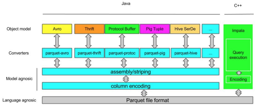 Parquet 起源于 2013 年,它是由 Twitter 和 Cloudera 合作开发的一种开源文件格式,其诞生的主要目的是为了解决大数据环境下传统行式存储格式的局限性,与一些传统的列式存储系统(如 C-Store、MonetDB 等)相比,Parquet 最大的贡献是支持嵌套格式数据的列式存储。嵌套格式可以很自然地描述互联网和科学计算等领域的数据,Parquet“原生”的支持嵌套格式数据减少了规则化、重新组合这些大规模数据的代价。