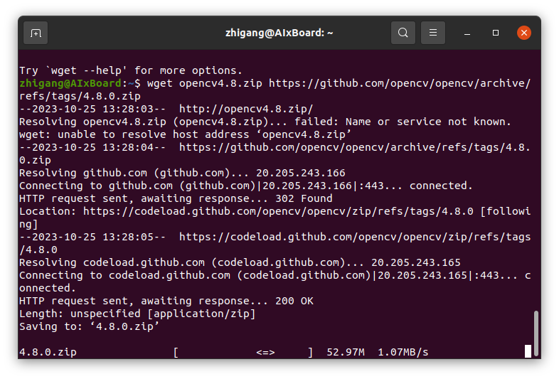 wget -o opencv4.8.zip https://github.com/opencv/opencv/archive/refs/tags/4.8.0.zip