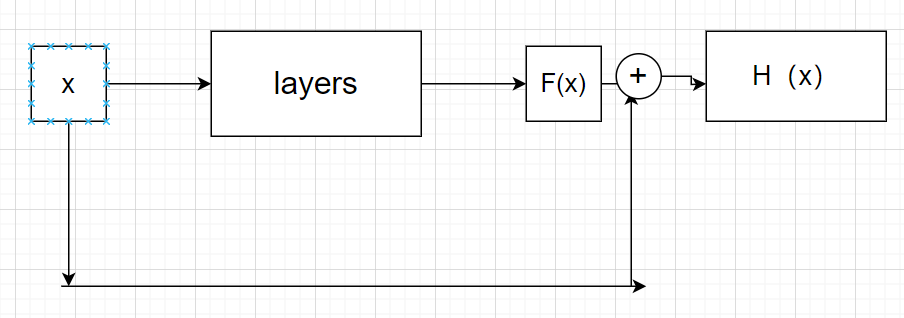 我们假设有一个网络的输出是H(x),输入为x,layers所做的一系列操作是F(x)。要让此网络做到F(x) = x,也就是做到H(x) = F(x) + x(F(x) = 0),换句话说:残差网络就是输出等于输入的网络(恒等映射)(如图)。