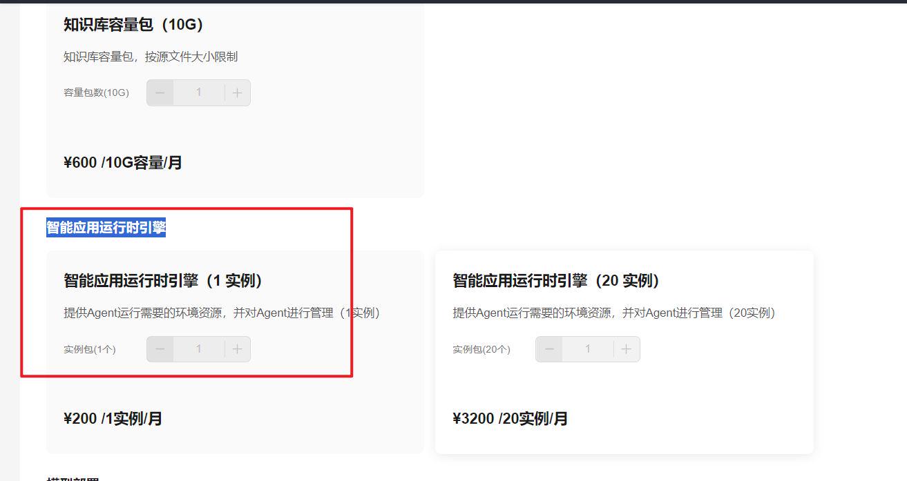 选择自由订购——>包年包月——>智能应用运行时引擎,按照需要购买实例个数以及购买时长