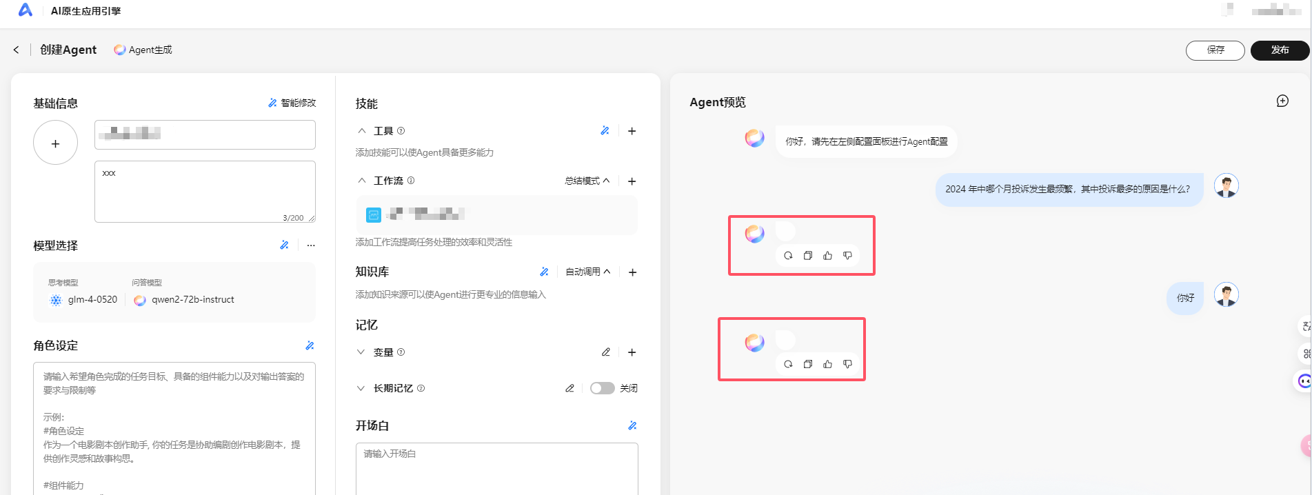 Q15:Agent问答的时候没有输出,只有一个白色的泡泡?