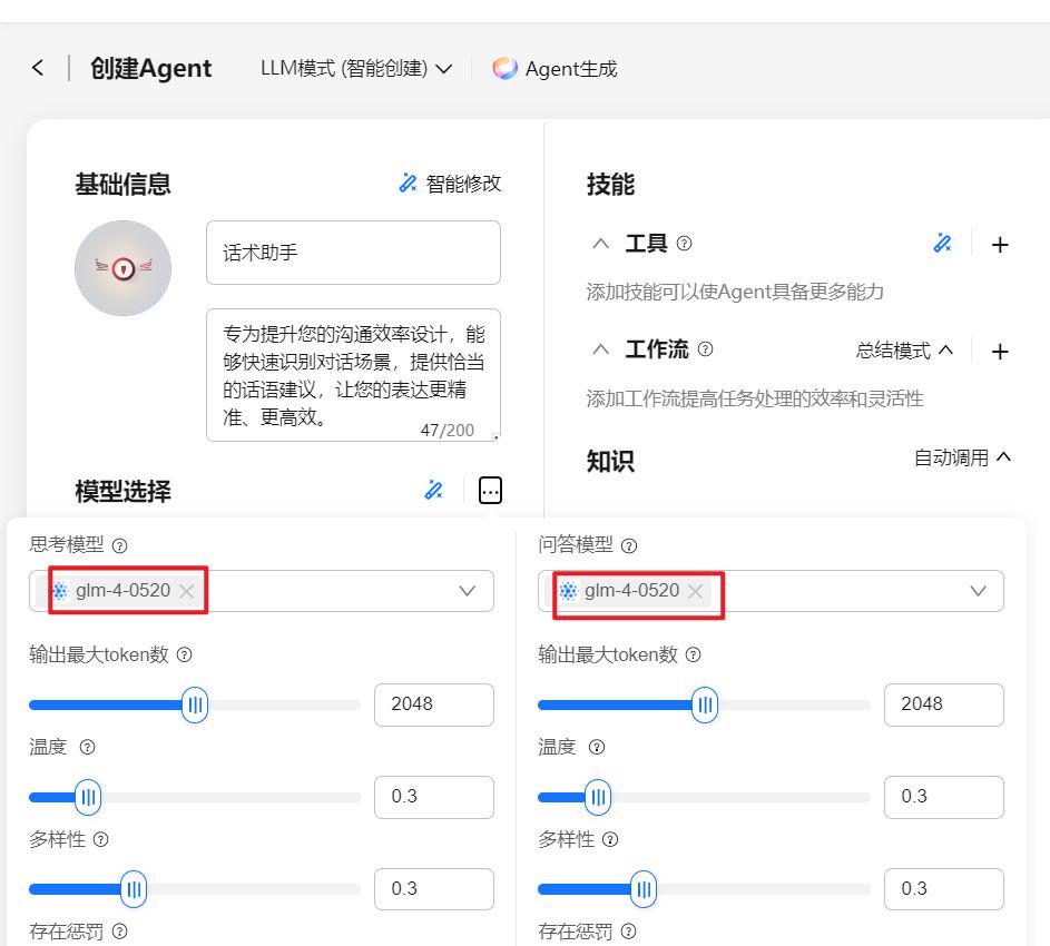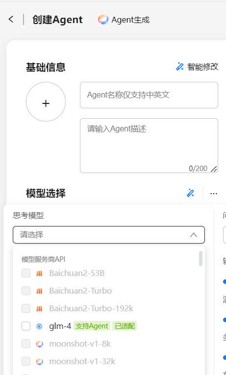 Q17:一站式创建agent,默认是智谱的模型,怎么选到其他的模型?