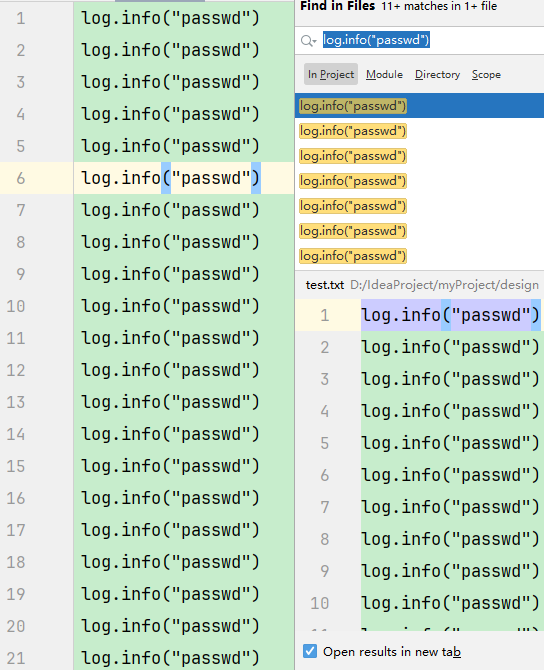 有时候,我们可能需要全局搜索某些字符,用作排查,例如排查是否有日志打印。
