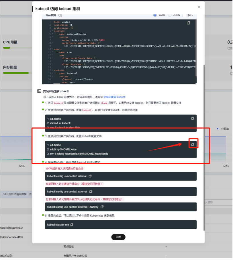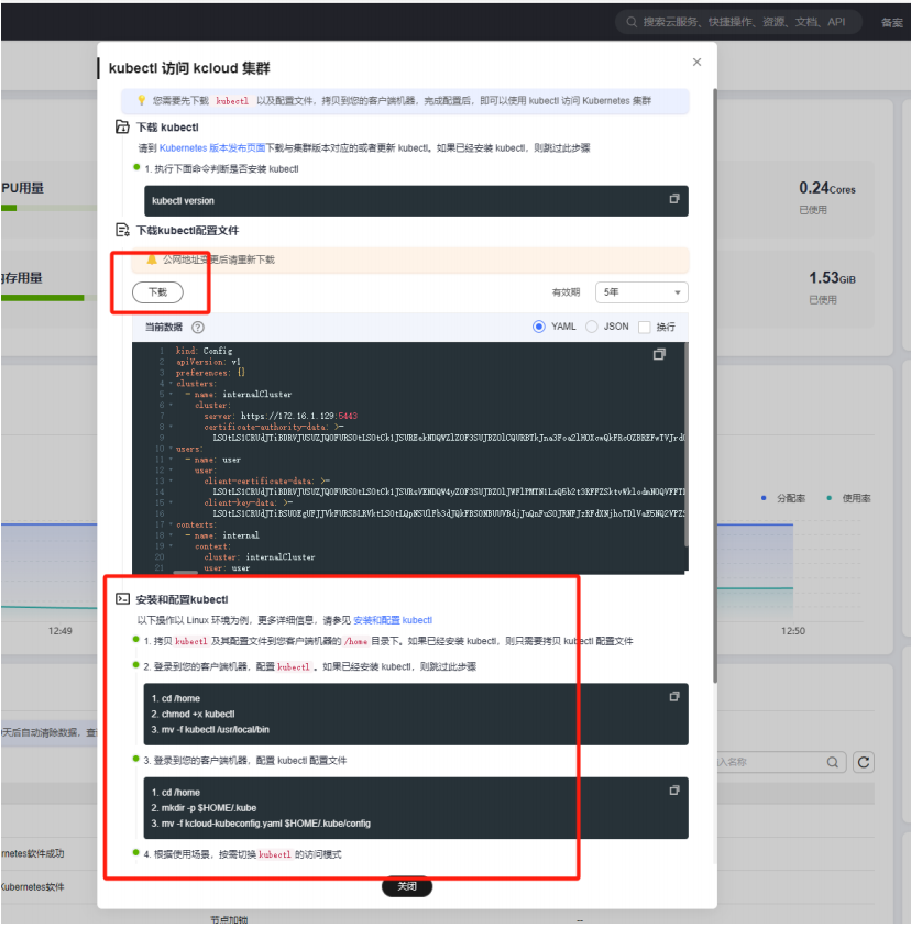 在 kcloud 集群中安装 kubectl 命令,使用 kubectl 命令管理 kcloud 集群。