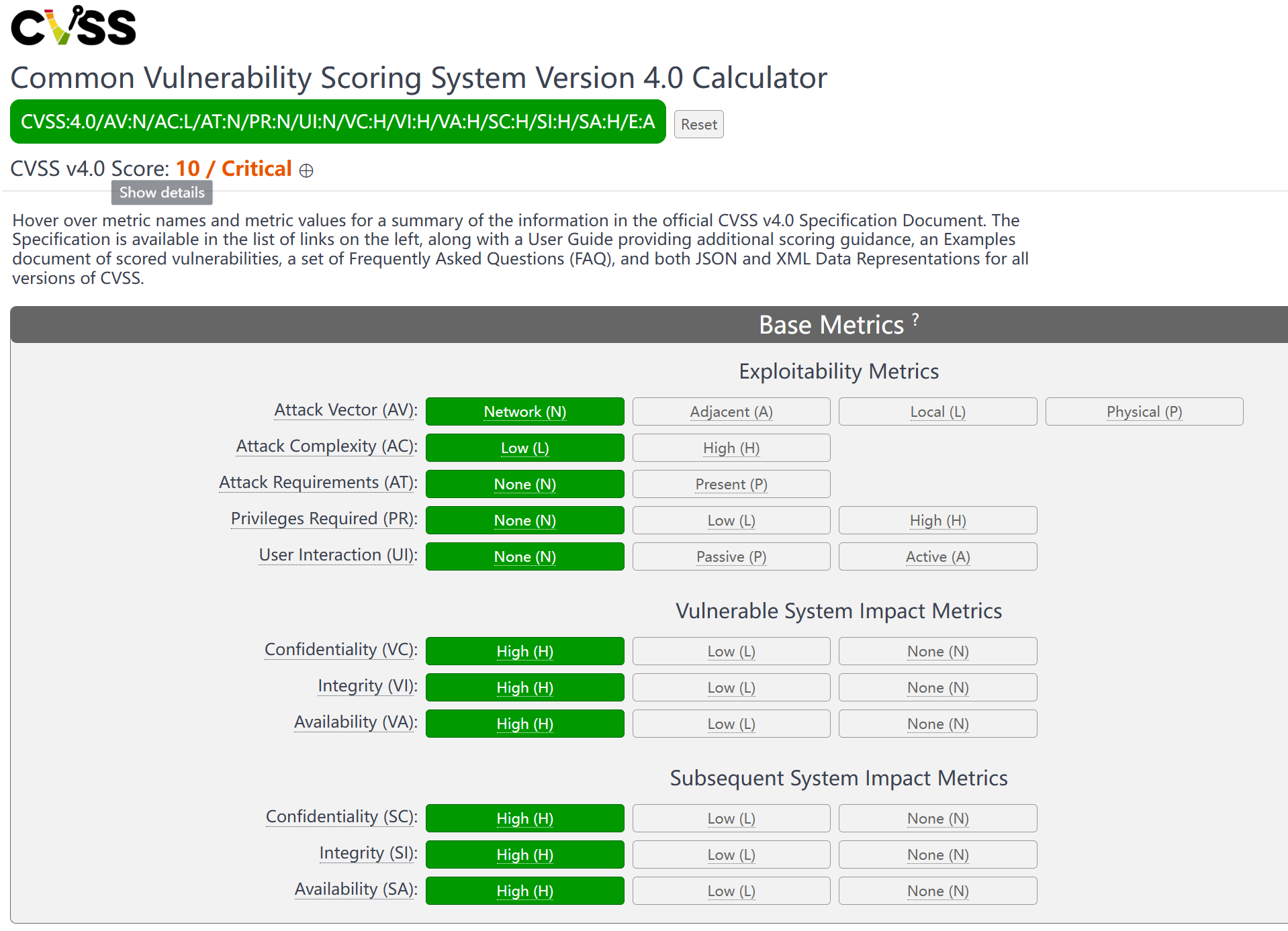 VSS v4 分数:基础 + 威胁 10.0
