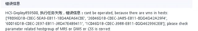 【摘要】 1、问题现象2、定位信息3、解决方案DWS规划的主机组,用来发放ECS直通盘集群。如果没有规划,填写一个空的主机组即可。如果实在没有,填写一个有ECS的主机组也可。后面主机组资源隔离工步报错跳过即可。主机组配置也根据实际填写。如果没有规划随便填写不影响部署,只是创建规格时需要一个配置输入。该工步报错可以跳过,不影响