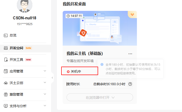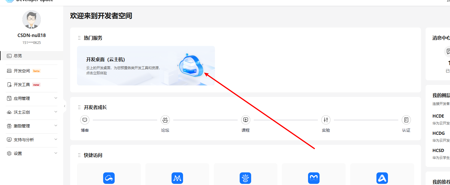 进入开发者空间,领取云主机