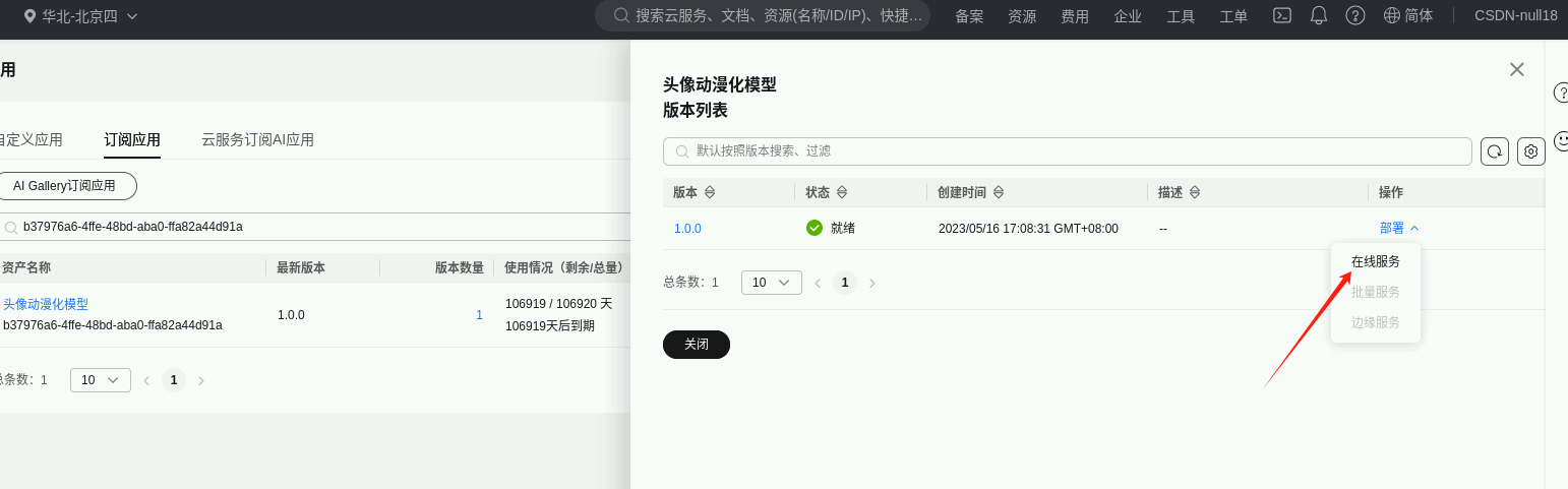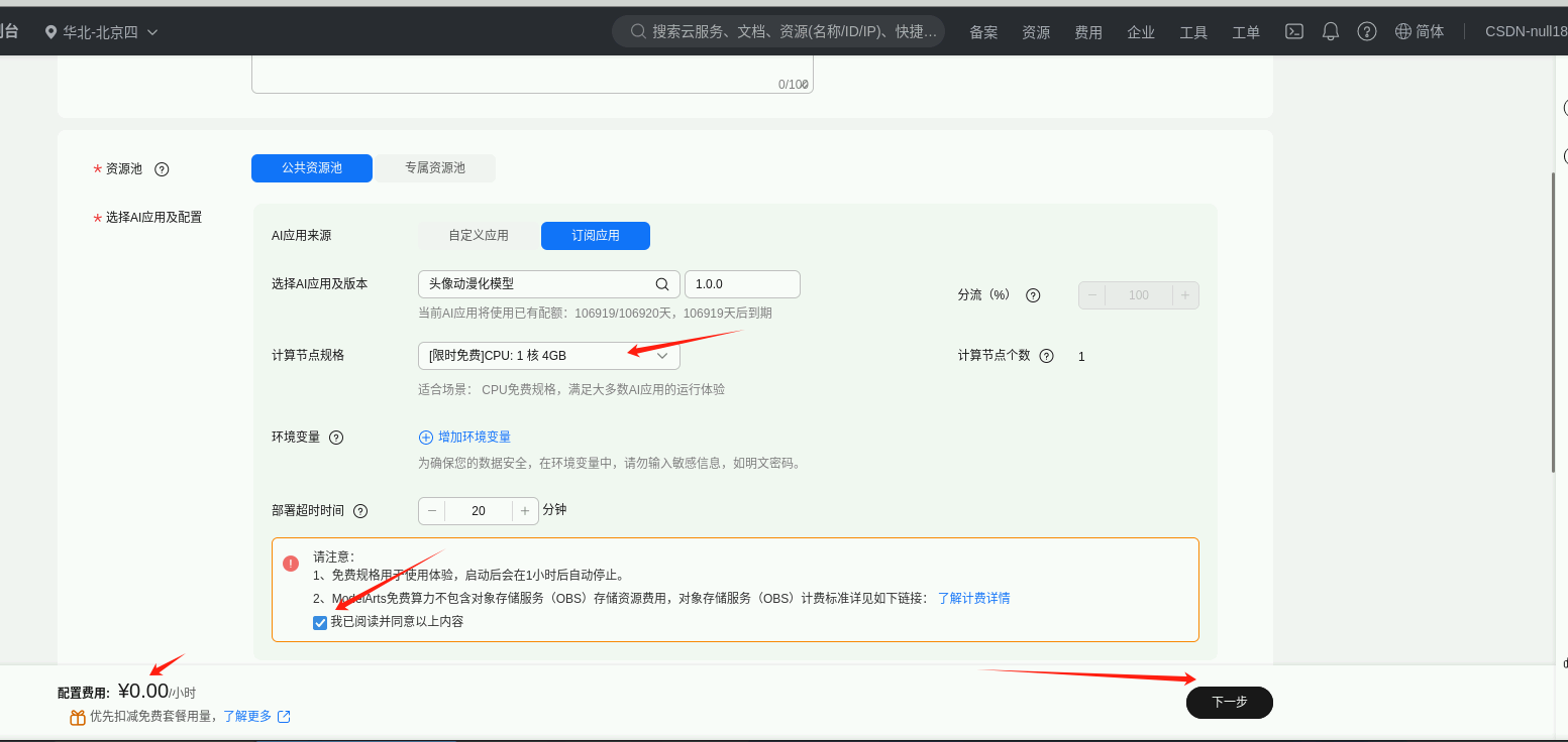 部署环境选择“华北-北京四