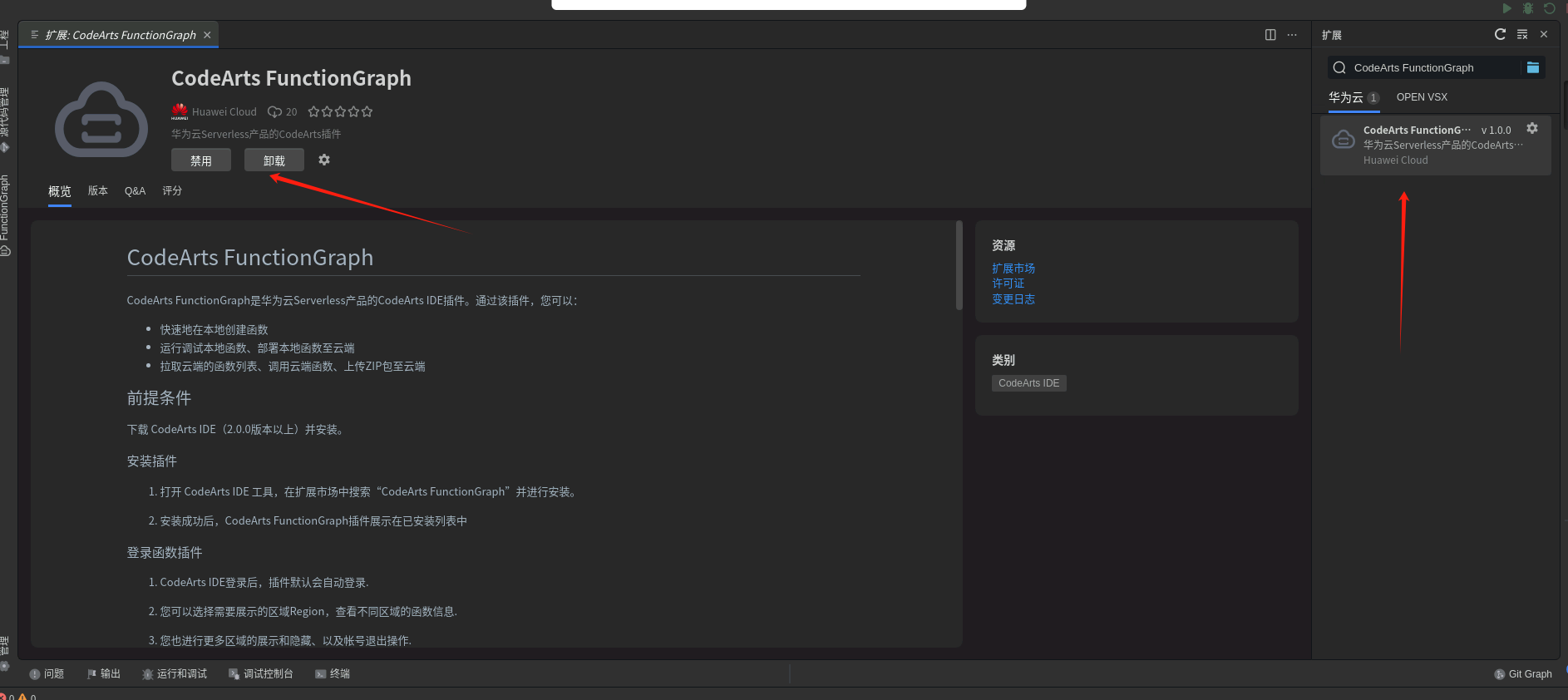 ① 安装FunctionGraph插件;