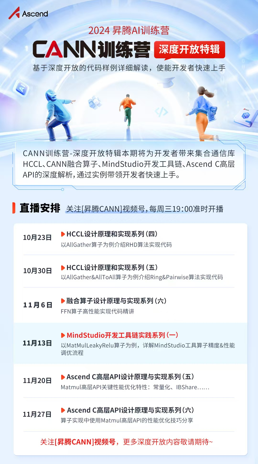 昇腾社区观看链接:https://www.hiascend.com/developer/cann20242?tab=live#cann-camp-2402-live-course