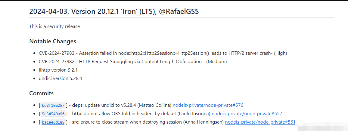 版本日志历史: https://github.com/nodejs/node/blob/main/doc/changelogs/CHANGELOG_V20.md#20.11.0
