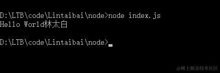 新建一个index.js文件 打开cmd命令行界面 里面输出一个简单的信息