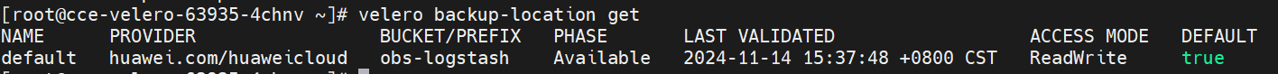 部署velero,查看存储状态是否可用: