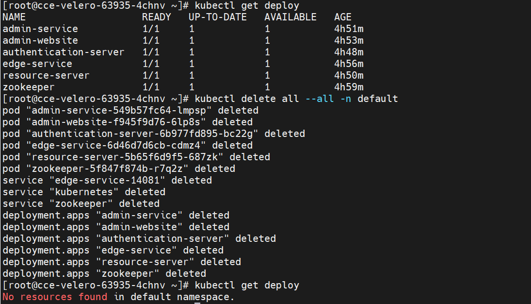 销毁default命名空间下的资源: